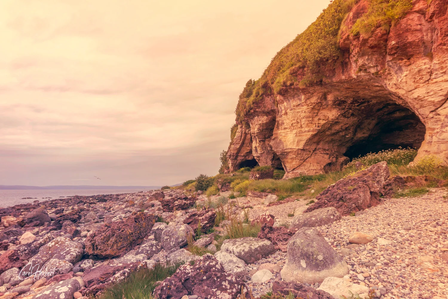 The King's Caves, Drumadoon, Isle of Arran, Scotland, said to have been a refuge of Robert the Bruce and one of several locations in which it is said he had his famed encounter with a spider.