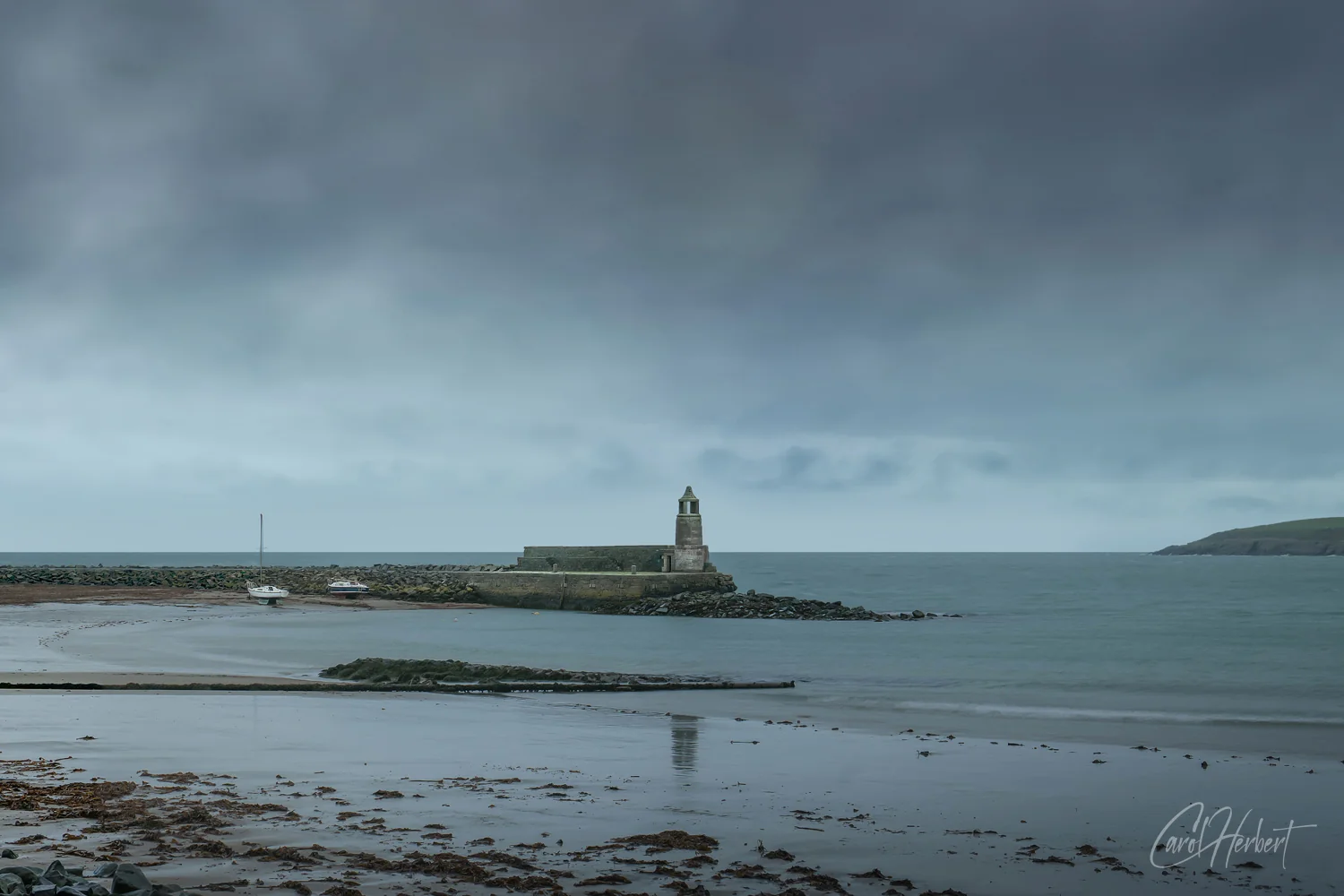 The Port Logan pier and lighthouse, located on the Mull of Galloway, Scotland.